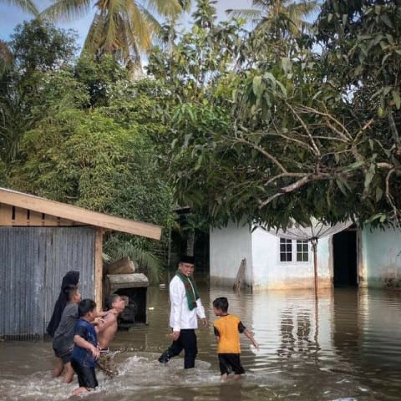 "Di tengah suasana gembira hari raya Idul Fitri 1442 H, namun sekarang saudara dan sanak keluarga kita di Desa Bagan Laguh Kecamatan Bunut mendapatkan musibah banjir yang melanda pemukiman, hal ini tentunya menghambat aktivitas warga seperti biasanya, apalagi suasana lebaran ini kesempatan bagi masyarakat untuk selalu bersilaturahmi kunjung mengunjungi antar rumah.