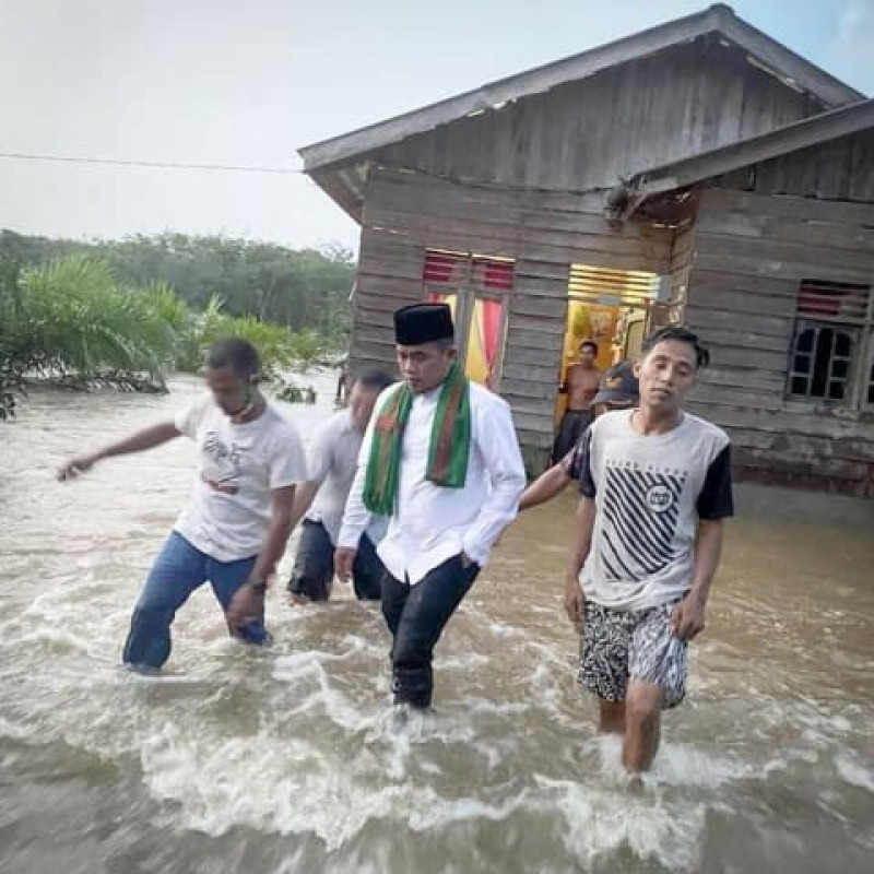 Banjir 2 Desa di Kecamatan Bunut, Bupati H. Zukri Langsung Turun Ke Lokasi Banjir